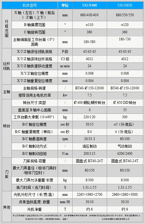 機(jī)型:UG-N400、UG-N650(牛頭式五軸系列)